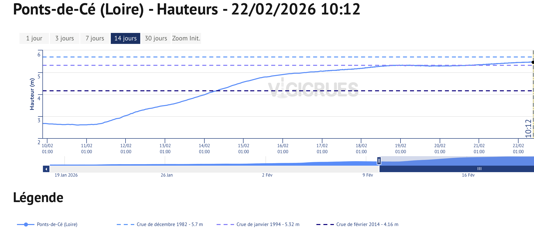 2026 nous a tous surpris avec une montée des eaux rapide. Voici des relevés de la station des Ponts-de-Cé :
